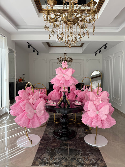 Rose Kuyruklu Şeker Pembe Elizabeth Kelebek Elbise