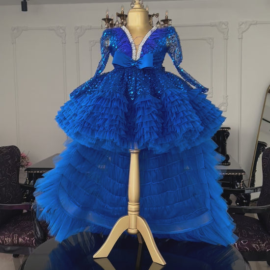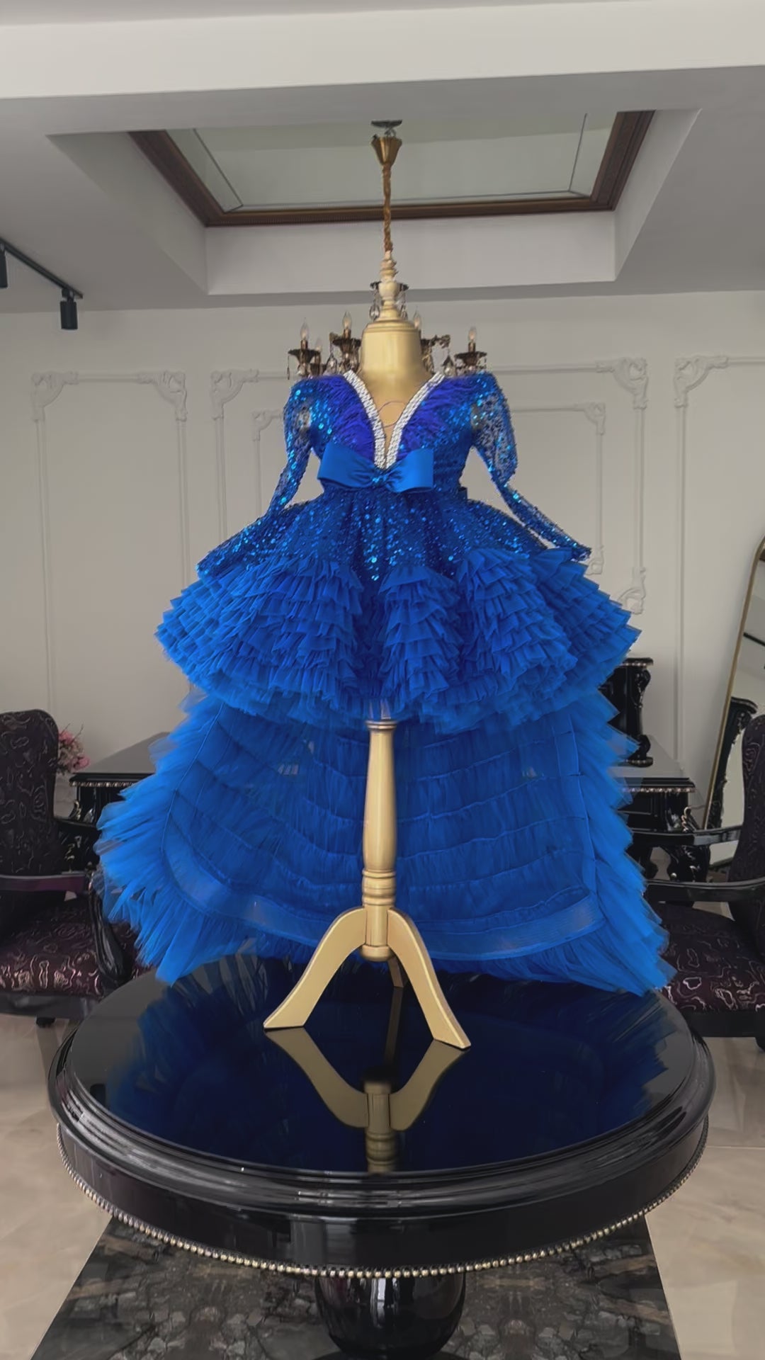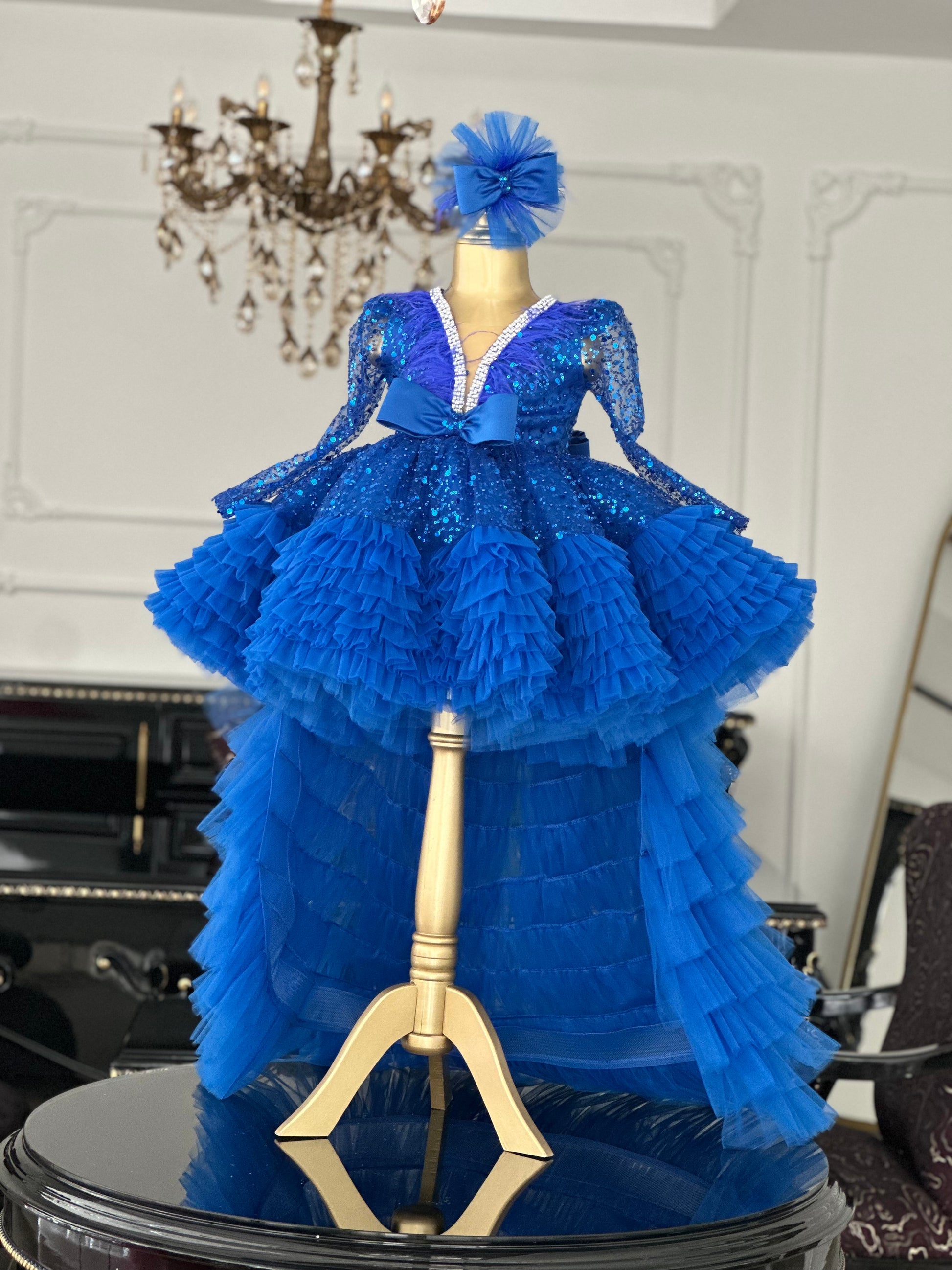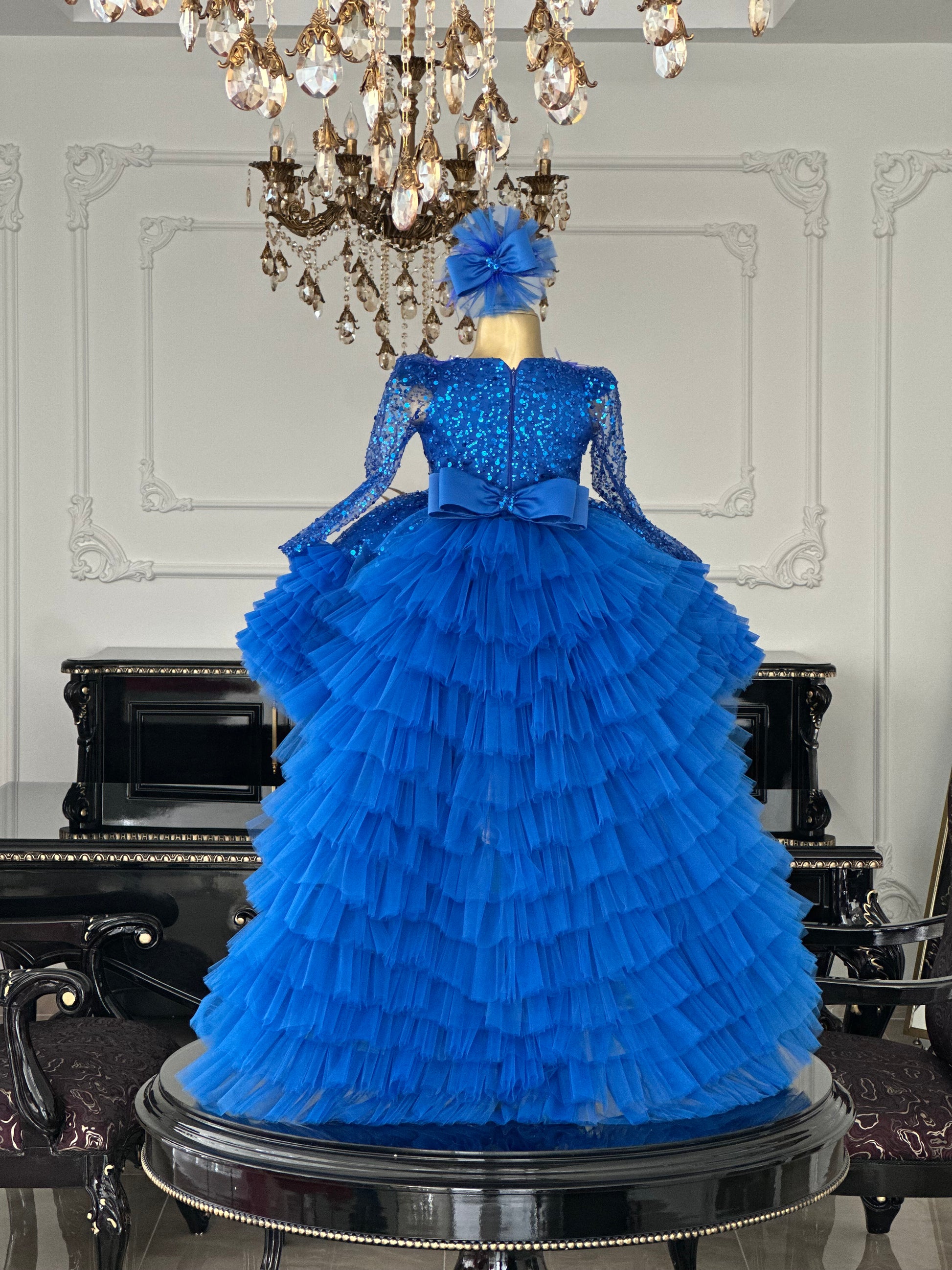 Kleopatra Saks Mavi Elbise - Özel Tasarım Kız Çocuk Abiye