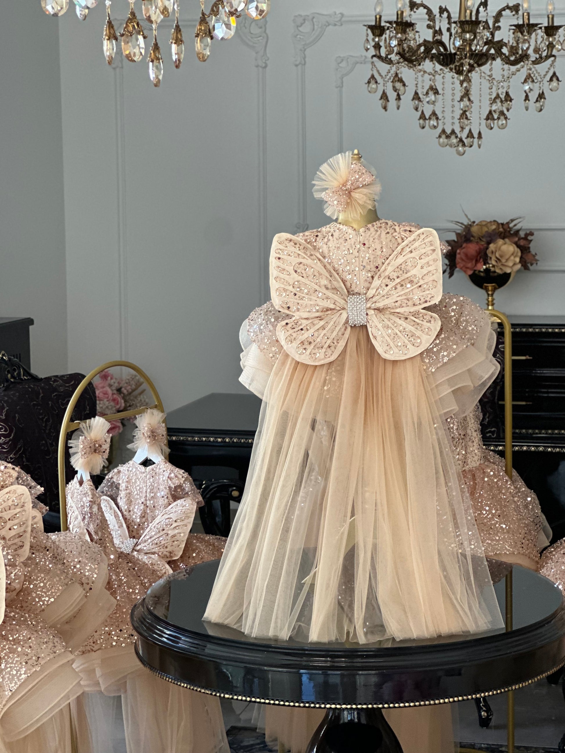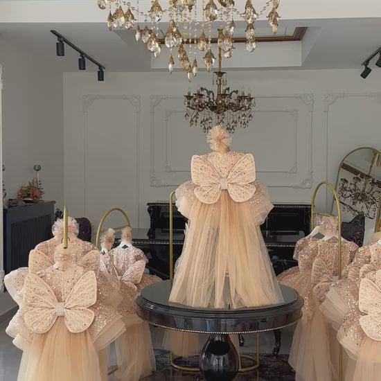 Shiny Gold Kelebek Elbise - Özel Tasarım Kız Çocuk Abiye
