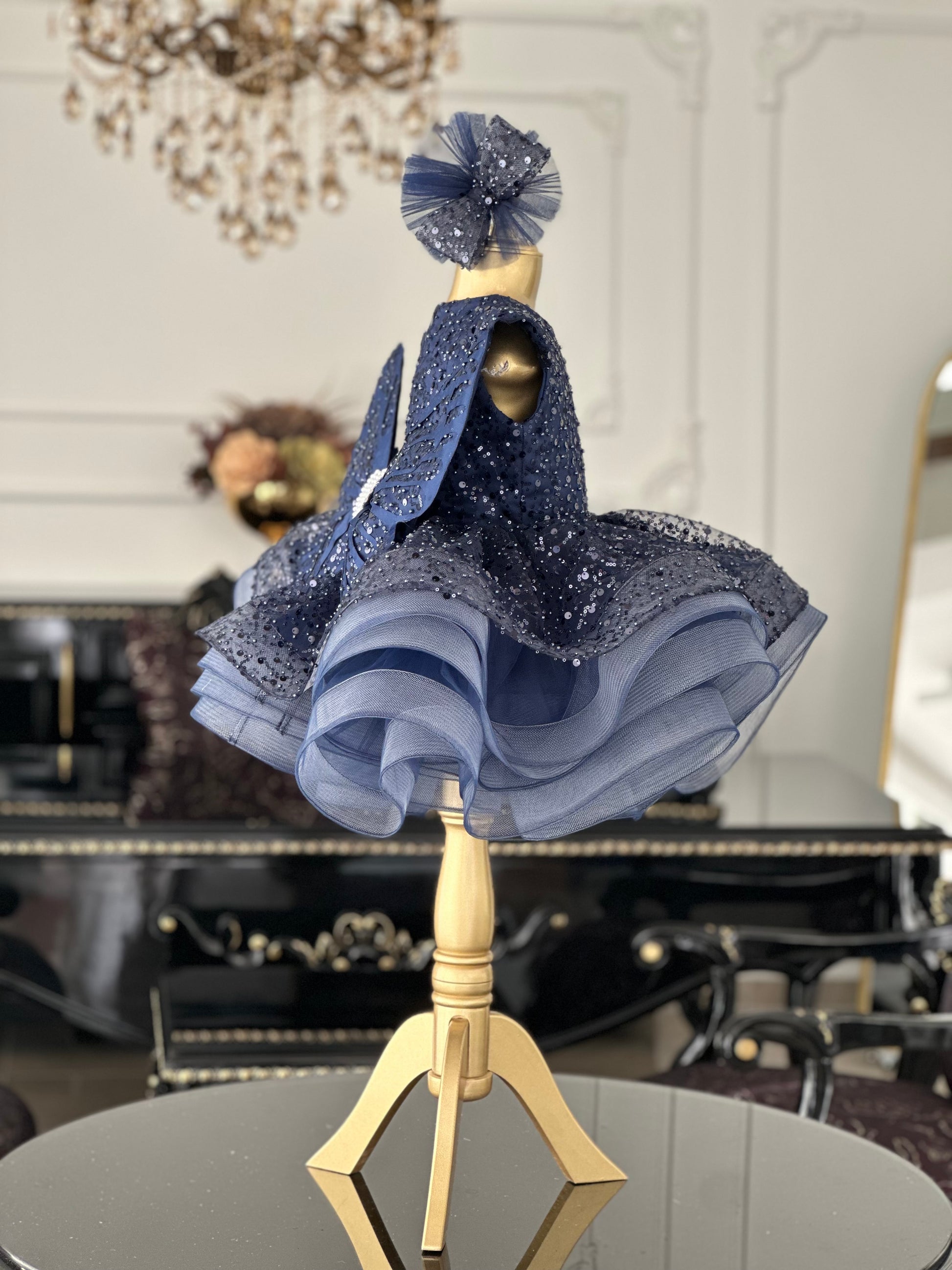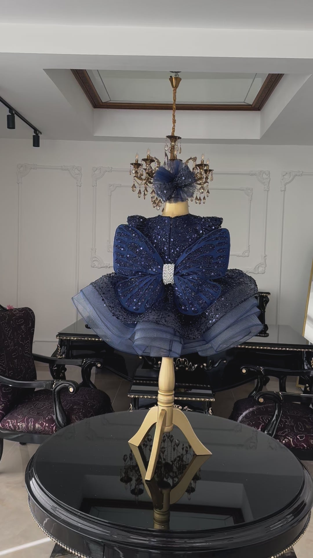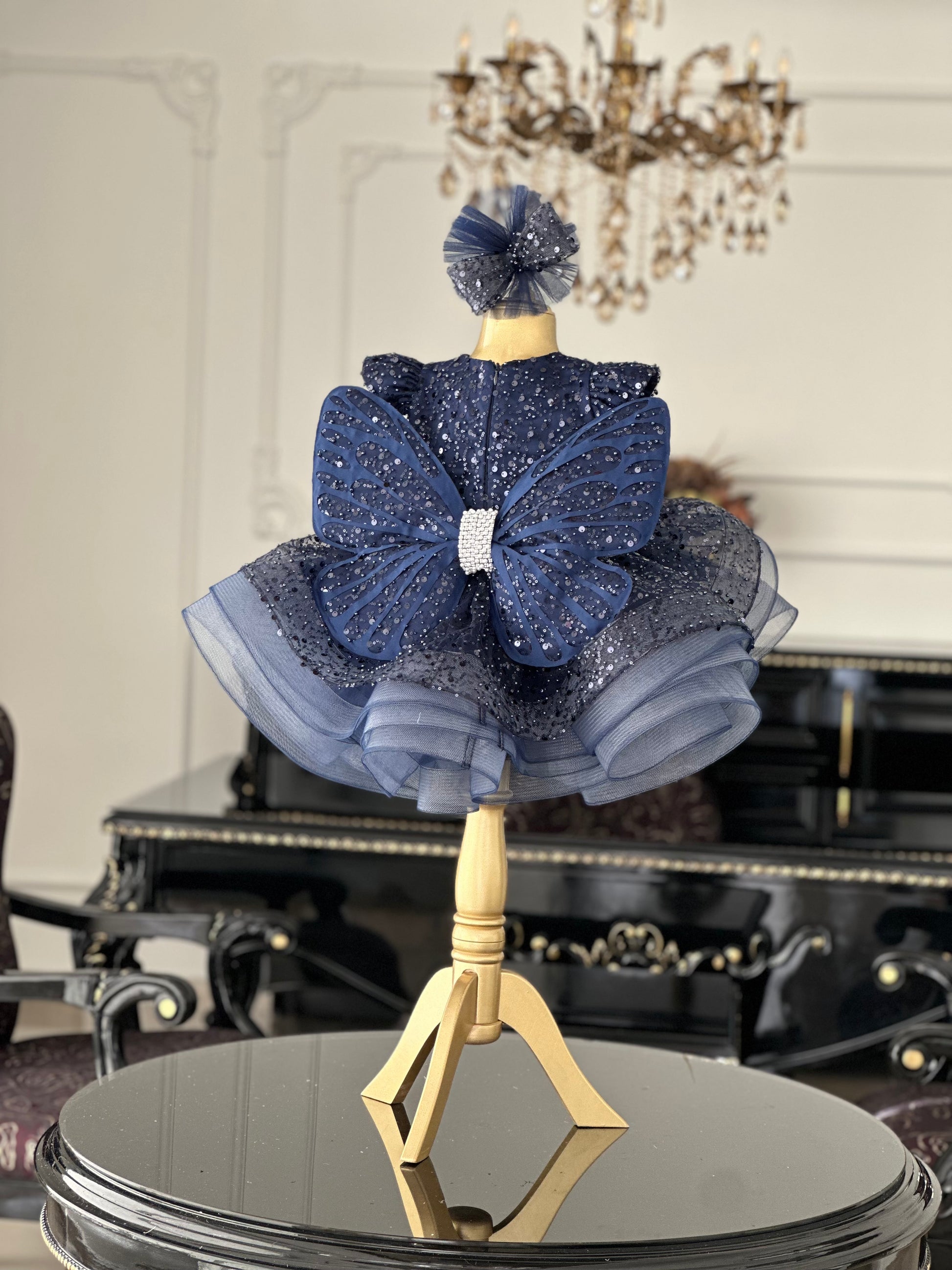 Shiny Lacivert Kelebek Elbise - Özel Tasarım Kız Çocuk Abiye