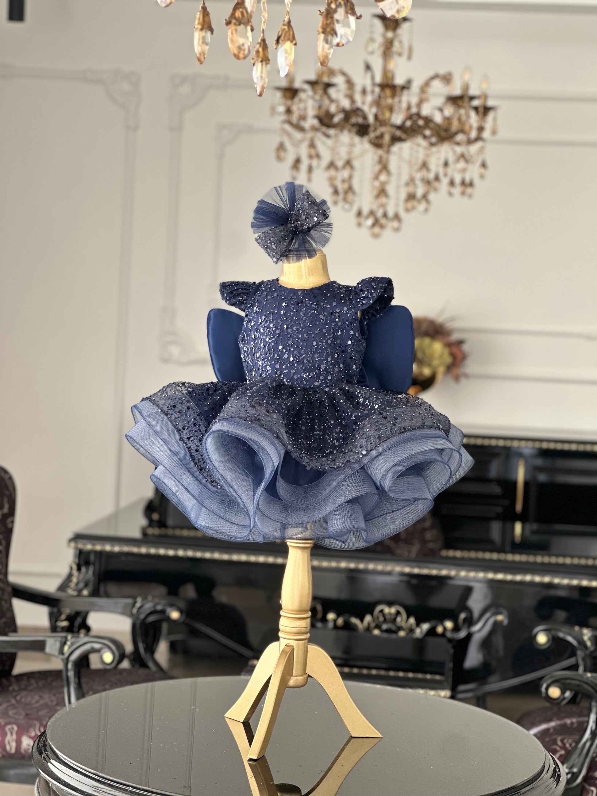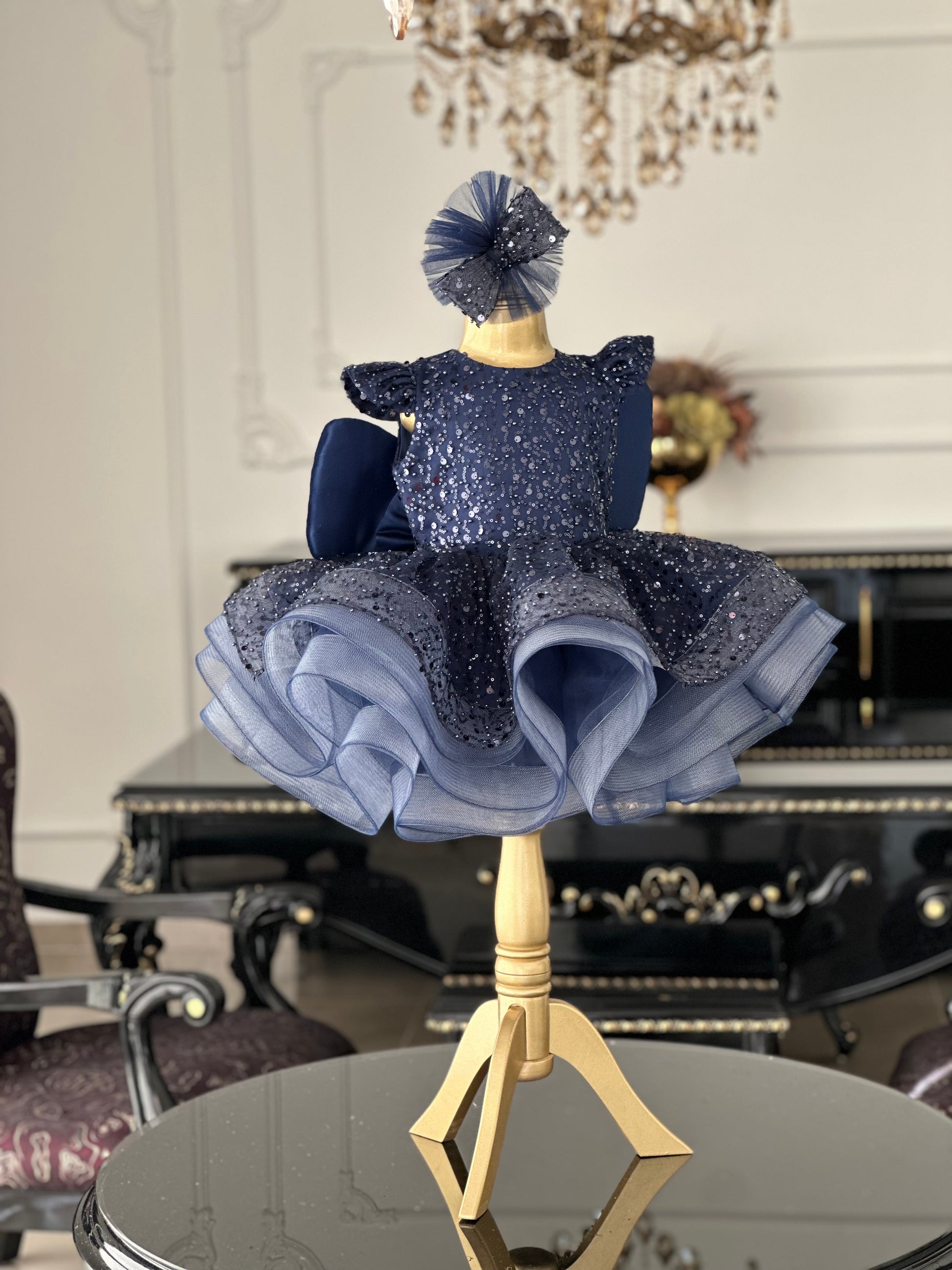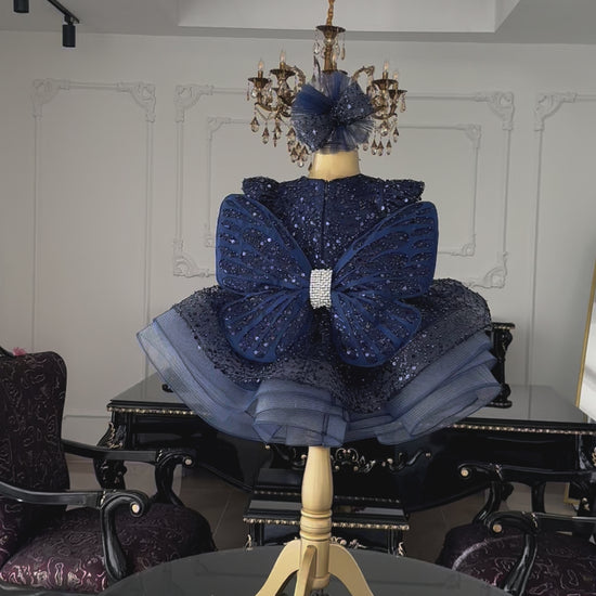 Shiny Lacivert Kelebek Elbise - Özel Tasarım Kız Çocuk Abiye